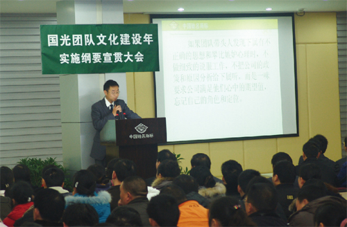 隨著企業(yè)的進一步壯大,營銷模式逐步轉型,技術服務的加強,國光品牌有了進一步的提升。同時注意到國內一些企業(yè)在短期行為的驅使下,不重視產品質量、不講誠信,導致企業(yè)壽命短。而世界上重視產品質量和品牌的知名企業(yè)大都有百年以上的歷史。國光基于這些感悟,在總結國光發(fā)展的成敗得失和類比剖析同行業(yè)基礎上,形成了『做百年、做品牌』的國光企業(yè)理念,并用這一理念去指導、規(guī)范『做質量、做誠信、做特色、做服務、做祥和、盡社會責任、重企業(yè)文化、重人才培養(yǎng)』的子理念行為,從而達到用品牌取勝,百年不衰。