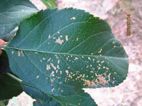若蟲從蘋果樹開花后即在蘋果新梢上吸取汁液,產(chǎn)生黑褐色刺點或孔洞,嚴重的整葉出現(xiàn)很多孔洞,致蘋果葉畸形或破裂,新梢不能生長甚至死亡,影響光合作用和樹體生育。在幼果面上刺吸造成壞死點,隨幼果生長,壞死點處形成術栓化組織。