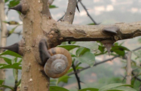 腹足綱,主要危害葉片和樹皮,葉片常被其吃成缺刻,枝條皮層也常被取食,花椒果實取食后形成凹坑狀。