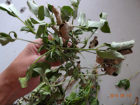 癥狀:(1)葉片:發(fā)病,病斑暗褐色,近圓形,直徑3~8毫米,具不明顯輪紋。潮濕時,病斑呈水漬狀軟化腐爛。(2)莖部:莖部發(fā)病,病斑初為褐色,后變?yōu)樯詈稚,最后呈黑褐色。造成莖桿軟腐,植株萎蔫枯死。在潮濕條件下,病斑上布滿灰褐色絨毛狀霉狀物和灰白色粉狀物,即病菌菌絲、分生孢子梗和分生孢子;ㄉ鷮⒔斋@時,莖的皮層及木質(zhì)部之間產(chǎn)生大量小菌核,有時菌核能突破表皮外露。(3)果針:果針受害后,收獲時易斷裂。(4)莢果:莢果受害后變?yōu)楹稚,在表面或莢果里生白色菌絲體及黑色菌核,引起子粒腐敗或干縮。大菌核病引起癥狀和小菌核病相似,但僅在莖蔓上發(fā)生,后期產(chǎn)生菌核較大。