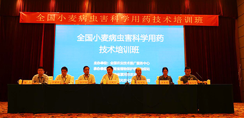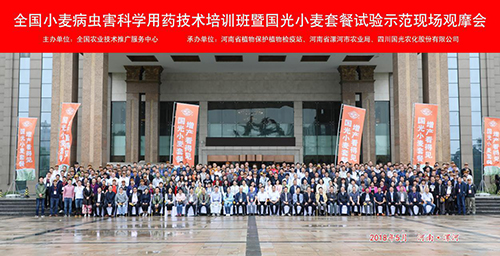 2018年5月21日—22日,由全國農(nóng)業(yè)技術(shù)推廣服務(wù)中心主辦,河南省植物保護(hù)植物檢疫站、河南省漯河市農(nóng)業(yè)局、四川國光聯(lián)合承辦的全國小麥病蟲害科學(xué)用藥技術(shù)培訓(xùn)班在河南省漯河市召開。全國農(nóng)業(yè)技術(shù)推廣服務(wù)中心農(nóng)藥與藥械處處長王鳳樂、副處長張帥、河南省植物保護(hù)植物檢疫站站長李好海、副站長韓世平、漯河市農(nóng)業(yè)局局長齊建偉、中國農(nóng)科院麻類研究所所長,中國植保學(xué)會(huì)理事長陳萬權(quán)、中國農(nóng)科院植保所研究員李香菊出席大會(huì)。本次大會(huì)立足于“農(nóng)業(yè)有干頭、農(nóng)村有看頭、農(nóng)民有盼頭”的鄉(xiāng)村振興課題,針對(duì)小麥的病蟲害科學(xué)用藥技術(shù)作了廣泛研討,吸引了全國小麥主產(chǎn)區(qū)植保系統(tǒng)的領(lǐng)導(dǎo)專家、種植大戶、農(nóng)資渠道商共300余人到會(huì)。