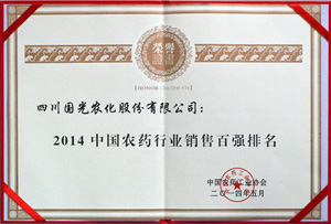 國光上榜“2014中國農(nóng)藥行業(yè)銷售百強排名”